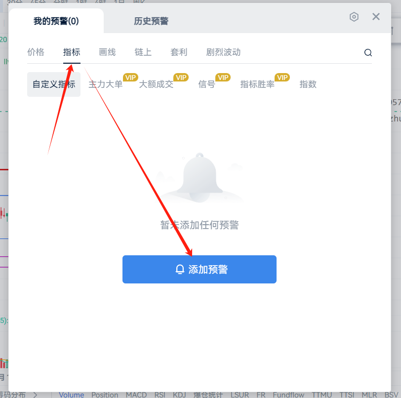 4、【波段王者-币币】共有6个预警选项,因为软件超过2个订阅要付费,所以可以优先选择画勾的两个预警,设置完成后,{保存}